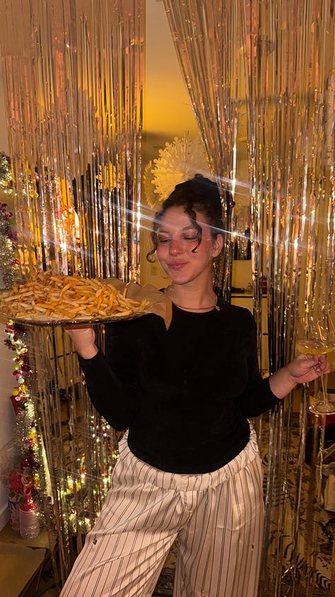 This whole vibe is so real. NYE is absolutely a stay‑at‑home holiday for us too likee elevated snacks, good wine, and something chaotic but fun like a murder mystery is peak perfection. And YES to olivye with bologna only… the texture is sacred. Loved reading this