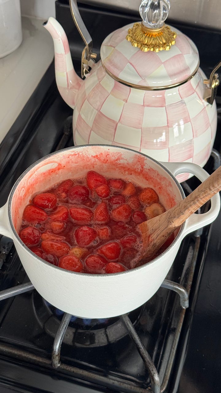 you could totally use a high quality strawberry preserve instead of making your own jam but I felt compelled to make life harder for myself and show off that I can make anything from scratch. besides, valentine’s day isn’t for shortcuts it’s for crafts!! that being said, bone mamman strawberry preserves would be great if you want a shortcut.