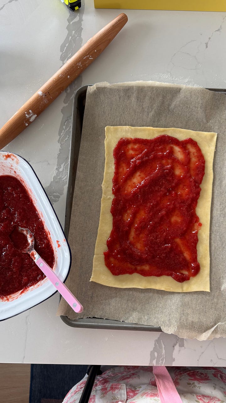 and if you really wanna shortcut it up, you can use store bought puff pastry for more of a flakey, toaster strudel vibe - just make sure to use an all-butter dough (not pillsbury which is oil and a bunch of other bs) since this is a pretty simple 2 part recipe - it’s worth splurging on the higher quality products, or of course, making your own :)